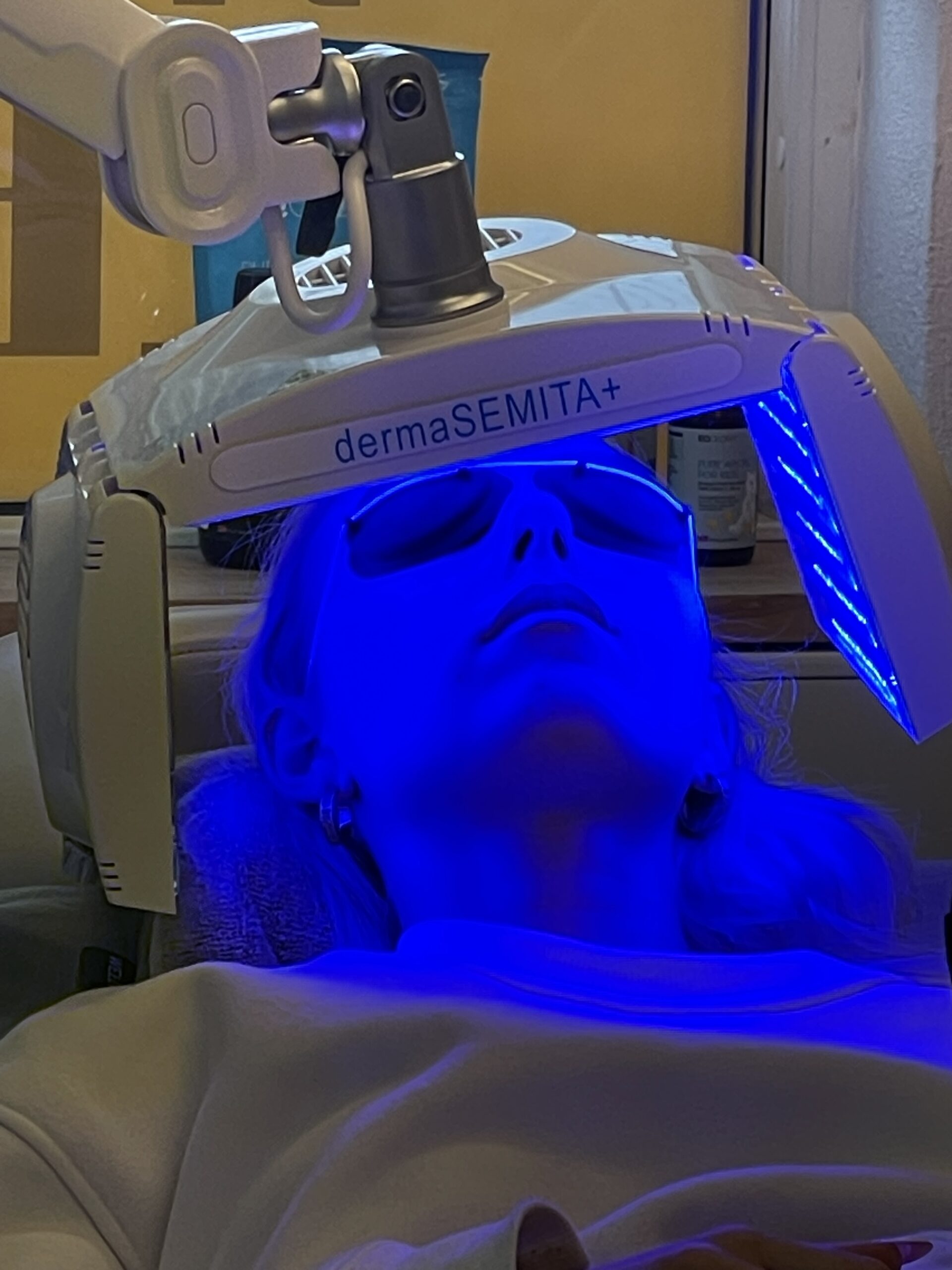 LED-lys terapi hjælper med at forbedre hudens struktur og elasticitet, gør fine linjer og rynker mindre synlige, og giver huden øget glød og friskhed. Samtidig aktiveres hudens naturlige reparationsprocesser, hvilket understøtter en sund og velplejet hud.